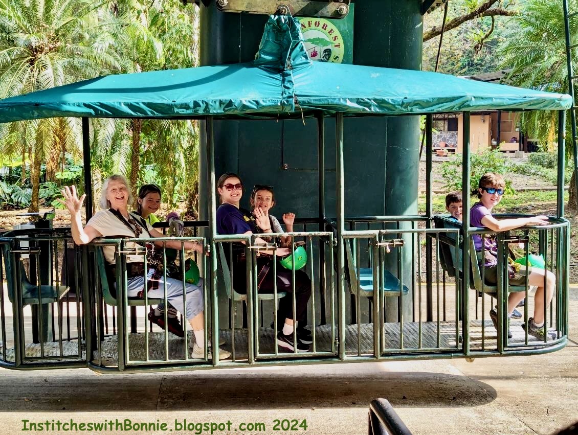 We all eventually got to our "compound" in Monteverde which was in the mountains. We had three houses which we divided up to each family. Of course the kids had their own ideas where to sleep. The oldest grand slept in our upstairs. They are really into reading and we offered the quietest area. The two middle girls slept at our daughter's house, and I have no idea where Teddy slept. Of course there was a small problem when Jenny and family left for breakfast one morning and all of Ellie's clothes were locked in that house. Sigh. I'll share pictures of the compound on another day as I've probably rambled on. But, wait!